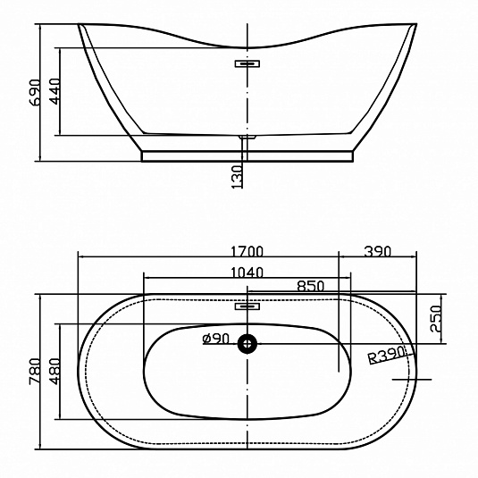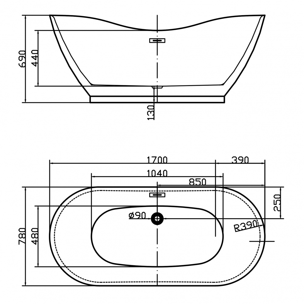 Freistehendes Acrylbad 1700 mm Swedbe Vita 8835
