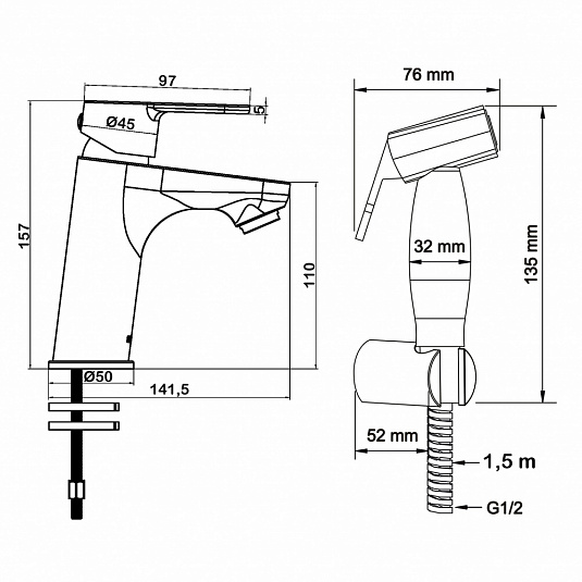 • Schlauchlänge, mm: 1500