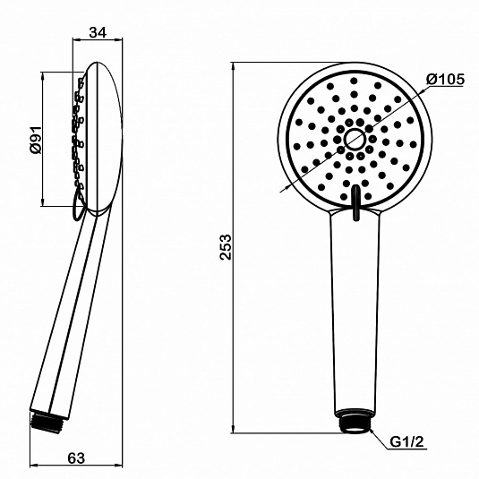 • El diámetro de la ducha de mano, mm: 100