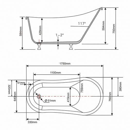 Baignoire autonome en acrylique 1710 mm Swedbe Vita 8819CH