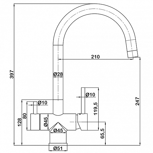 Robinet de pour cuisine avec un canal pour connecter un filtre Swedbe Selene Plus 8042