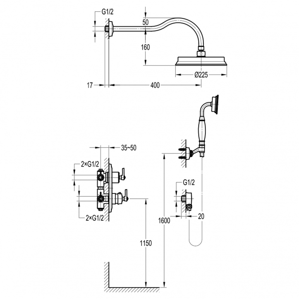 Douche familiale avec mitigeur thermostatique intégré Swedbe Terracotta Art 2520
