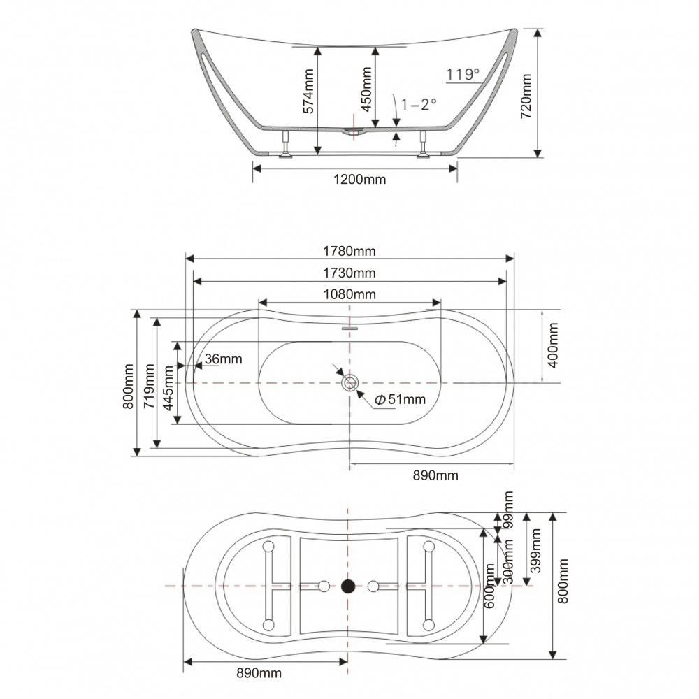 Vrijstaand acryl bad 1800 mm Swedbe Vita 8803