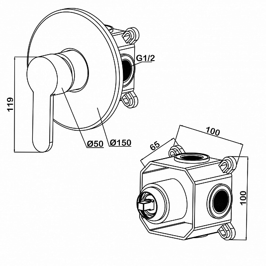 Ingebouwde mixer met aansluiting voor 1 uitgangen Swedbe Platta 5523