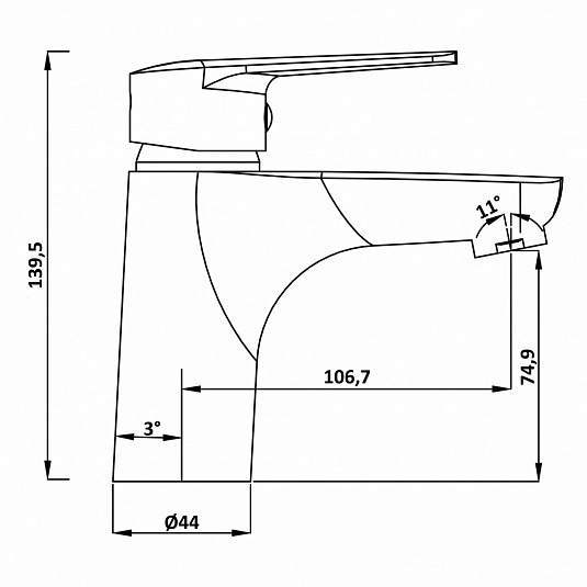 • Hoogte van de tuit, mm: 74,9