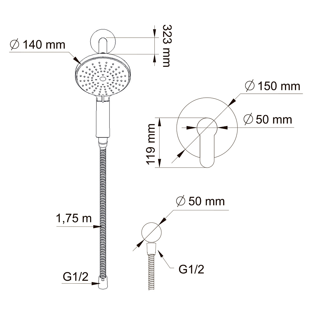 Swedbe Platta 5532 Душевой комплект с магнитным держателем и со встроенным смесителем.