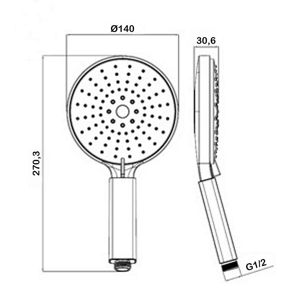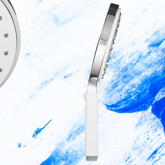 Ручной душ. 3 режима. Диаметр - 140 мм. Поток - 17,0 л/мин. Гипоаллергенный ABS пластик.  Цвет: хром/белый.