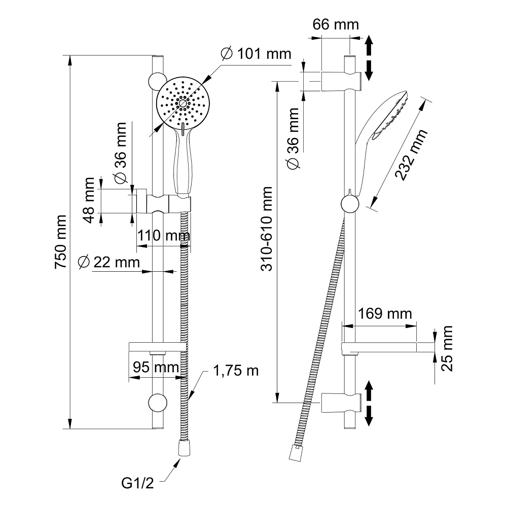 - ручной душ, с трехрежимной лейкой;