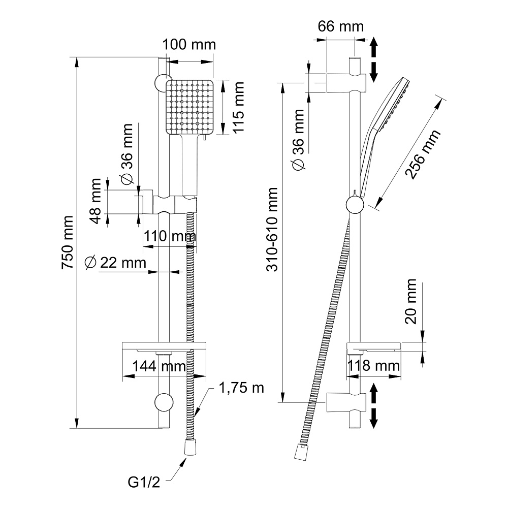 - ручной душ, с шестирежимной лейкой;