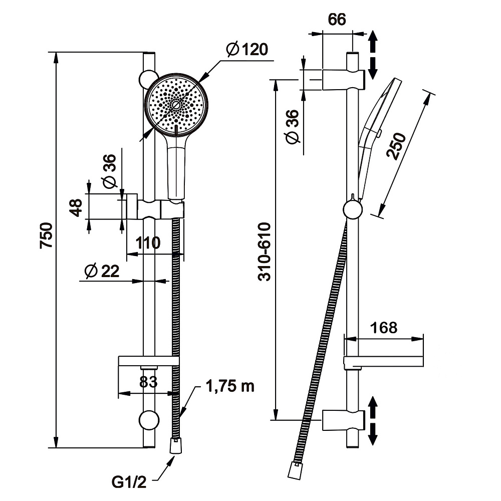 • Комплект поставки: ручной душ, штанга, многопозиционный кронштейн, шланг, мыльница, набор креплений, инструкция