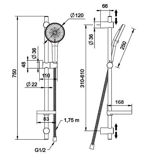 • Регулировка штанги по высоте, мм: 310-610