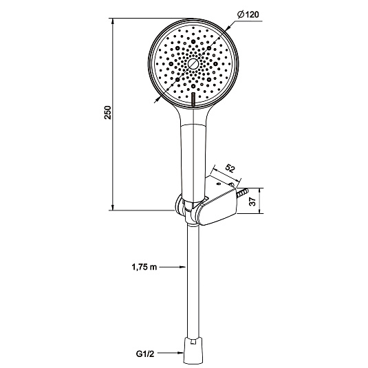 • Диаметр лейки ручного душа, мм: 120