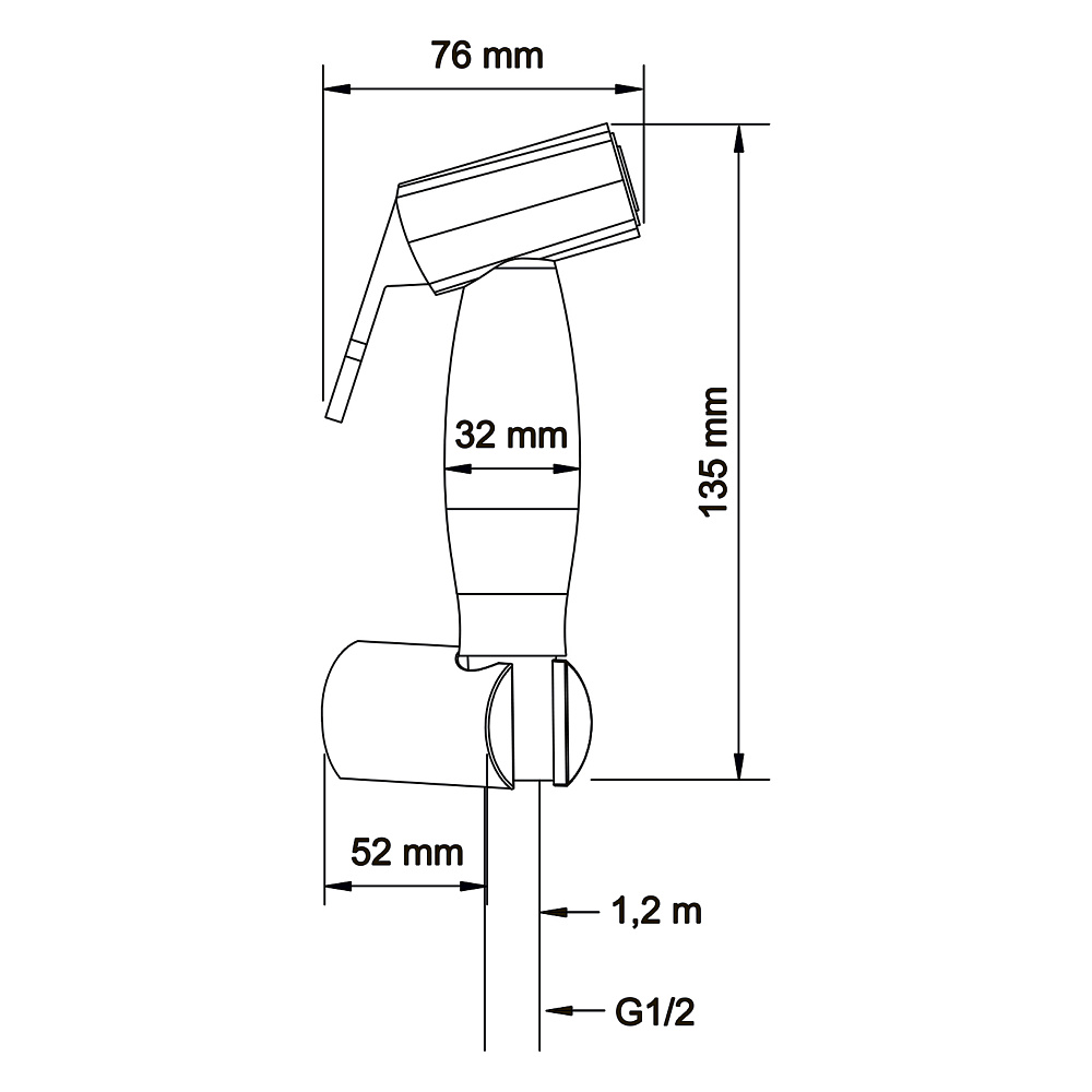 Гигиенический набор. 2 режима - стандартный и режим наполнения емкостей. Сопло из монополимера стойкого к обрастанию водным камнем. Шланг PVC (1,2 м) с системой против скручивания.