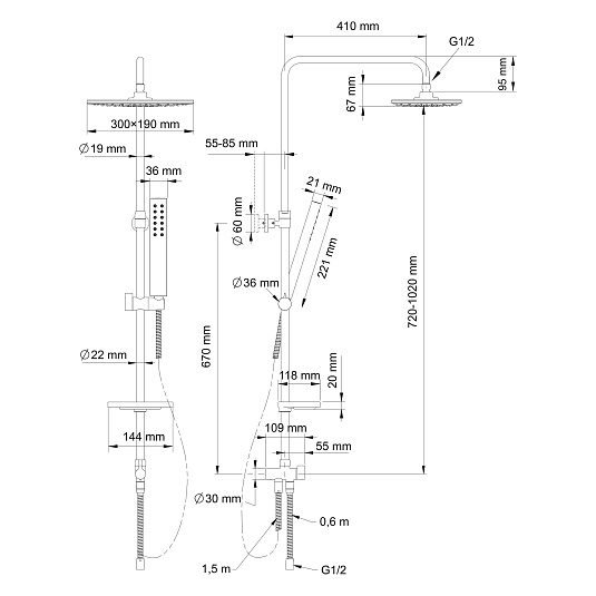 - верхний душ (душевая головка) с регулировкой наклона;