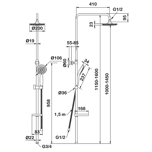 - верхний душ (душевая головка) с регулировкой наклона;