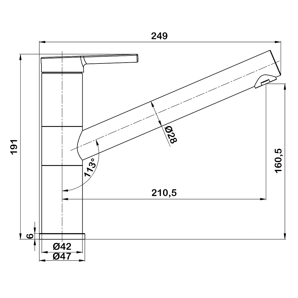 • Длина излива, мм: 249
