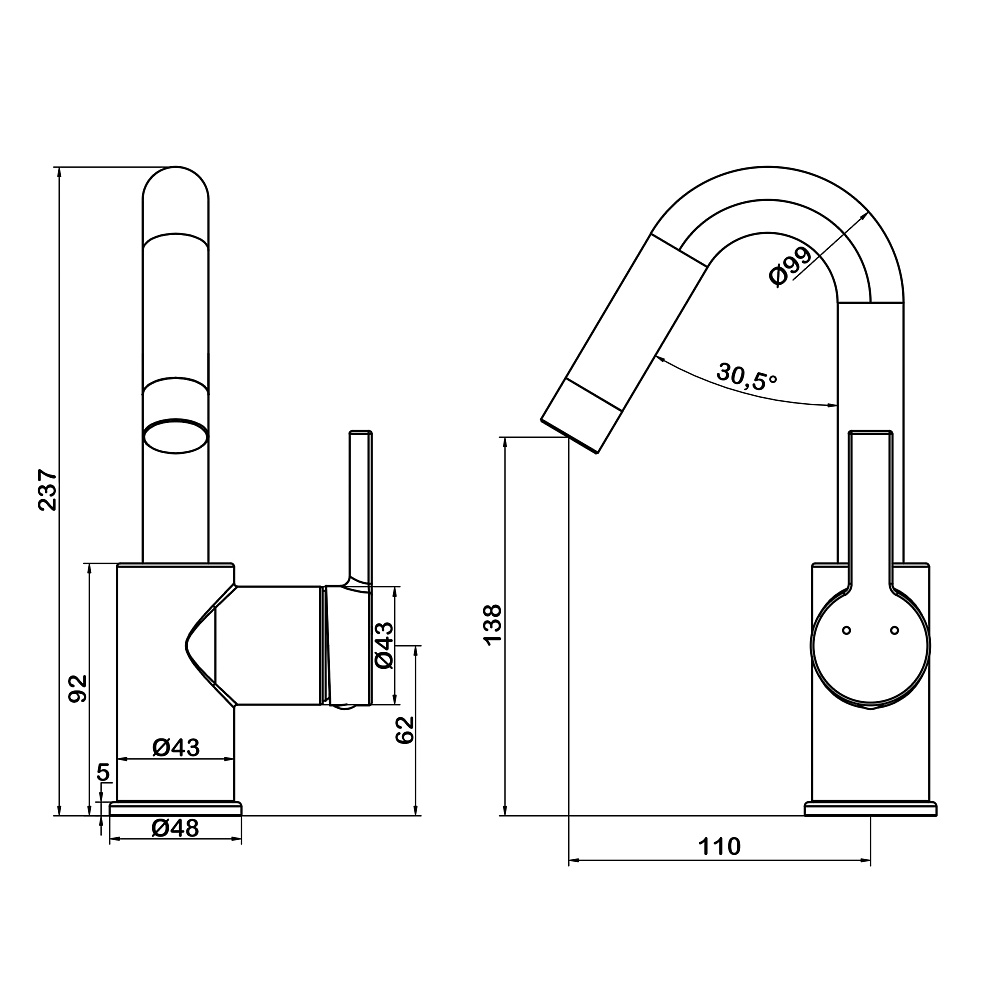 • Высота излива, мм: 237