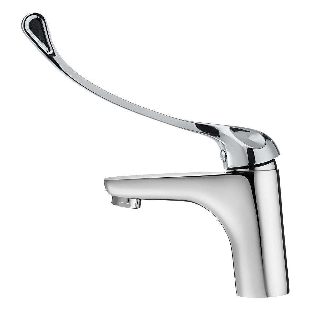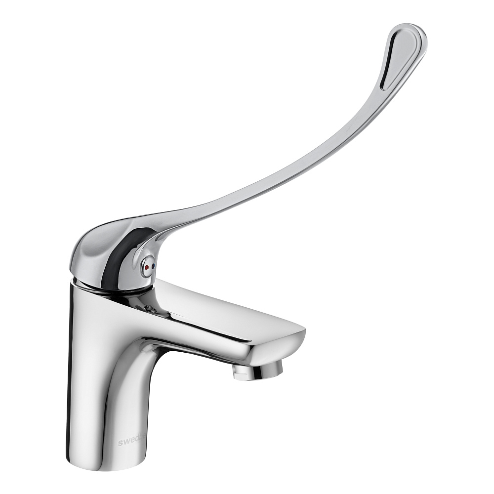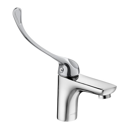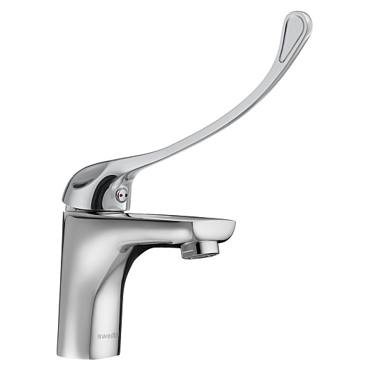 Однорычажный смеситель для раковины с рукояткой для людей с ограниченными возможностями Сведби Марс/Swedbe Mars выполнен с учетом высоких требований скандинавского рынка и по достоинству оценен потребителями в сегменте шведской сантехники эконом-класса. В излив встроен аэратор, который создаёт за счет подмешивания воздуха мягкий поток воды с отсутствием брызг. Аэратор устойчив к механическим повреждениям. Производитель снабдил модель гибкой подводкой, выполненной по современной технологии PEХ. Шланги из молекулярно-сшитого полиэтилена SoftPEX практически не стареют, имеют исключительное свойство восстанавливать форму после заломов и изгибов. Гибкость подводки обеспечивает чрезвычайную простоту монтажа.
