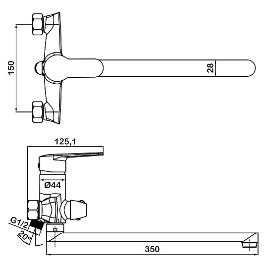 • Длина излива, мм: 350