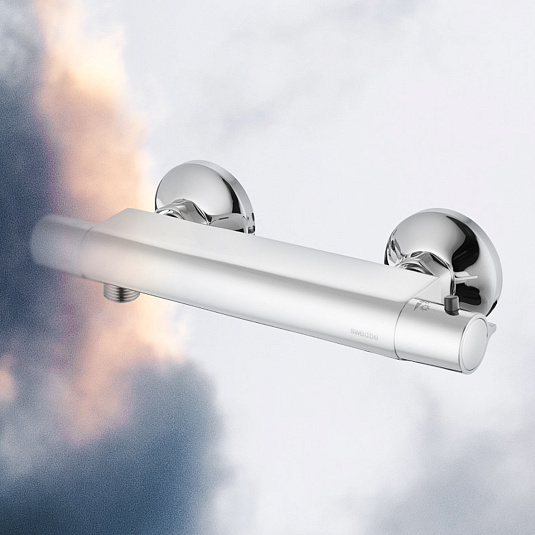 Термостат для душа Сведби Меркури/Swedbe Mercury — надёжный смеситель от шведского бренда Swedbe. Оснащён «умным» картриджем. Благодаря обратным клапанам решается проблема «выдавливания» холодной воды горячей из-за разницы давления, когда температуру воды отрегулировать невозможно. Клапаны чётко разделяют холодную и горячую воду, исключая подмес. Это важно в тех домах, где есть сильная разница давления в стояках. В моделе предусмотрен ограничитель температуры, предустановленный на отметке 38 градусов, что считается идеальным значением для комфортного мытья. Можно не бояться обжечься при повороте рукоятки температуры, что актуально для семей с маленькими детьми.