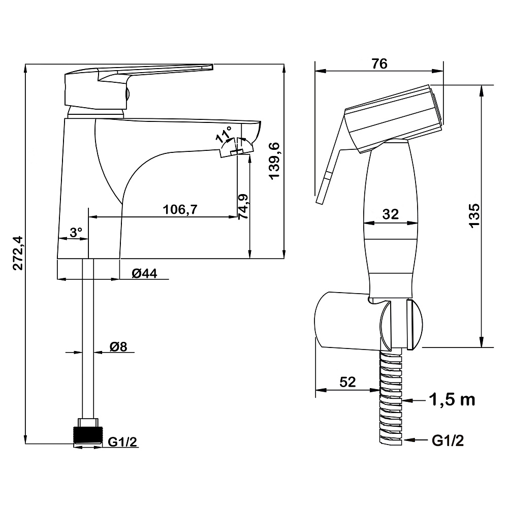 - металлический шланг (1,5 м) с системой против скручивания;