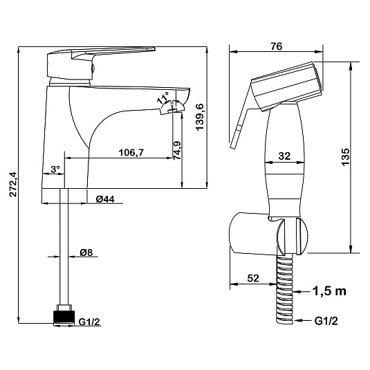 Смеситель для раковины с гигиеническим душем Сведби Марс/Swedbe Mars 1760.