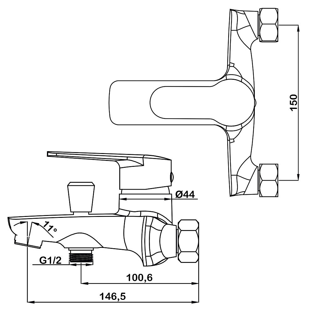 • Длина излива, мм: 146,5