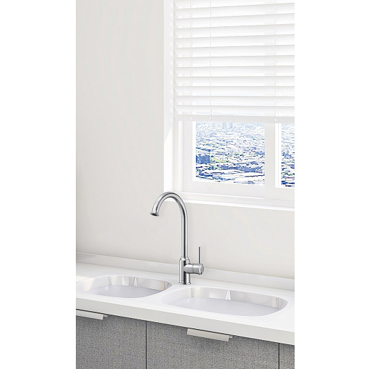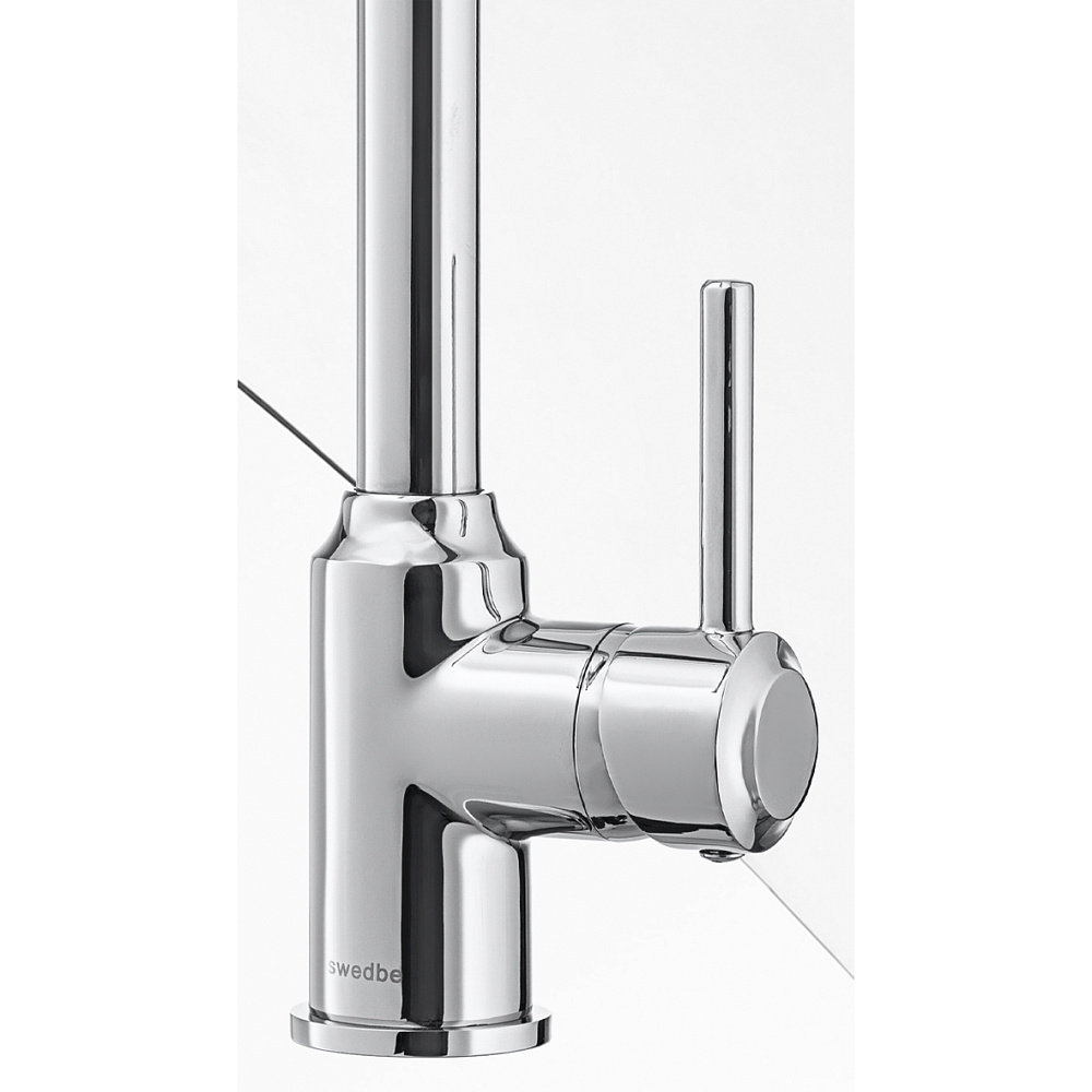 Смеситель для кухни Сведби Селена/Swedbe Selene от экспертов в области сантехники, гарантирующих на российском рынке шведское качество. Излив смесителя с полным поворотом вокруг своей оси позволяет максимально задействовать пространство вокруг мойки. Аэратор прекрасно смешивает воду с кислородом и решает проблему брызг во время пользования смесителем. Гибкая подводка подключения смесителя к водопроводной воде SoftPEX сроком службы 50 лет исключает возможность протечек, а два дополнительных резиновых кольца повышают надежность соединения системы. Смеситель сделан из латуни с высоким содержанием меди в сплаве, поэтому безопасен для здоровья.