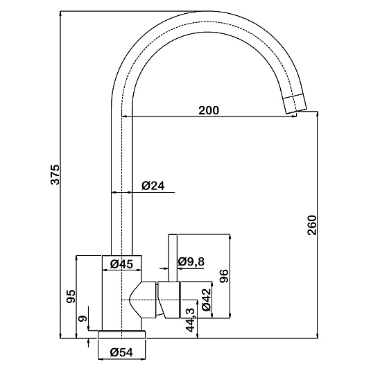 • Высота излива, мм: 375