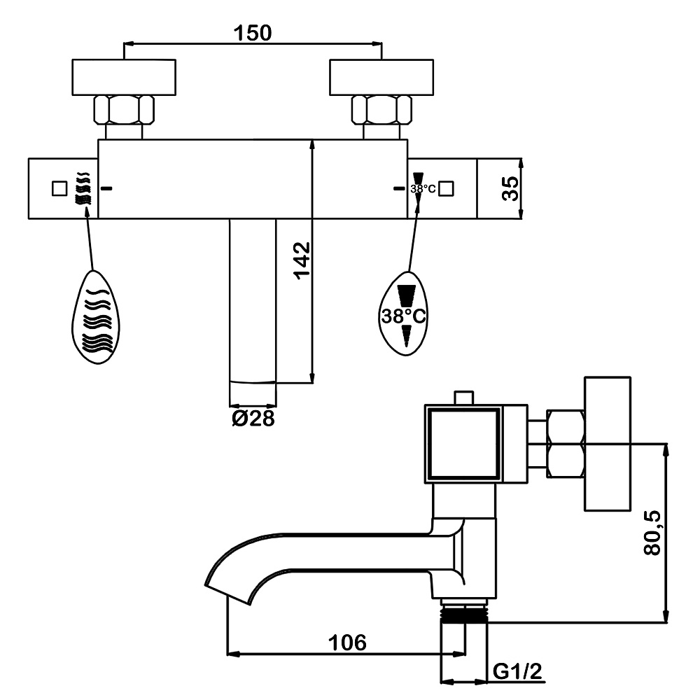 - термостатический ограничитель температуры до 38 градусов;
