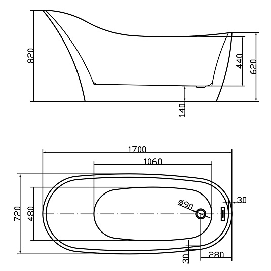 Ванна акриловая отдельностоящая 1700 мм Сведби Вита/Swedbe Vita 8820