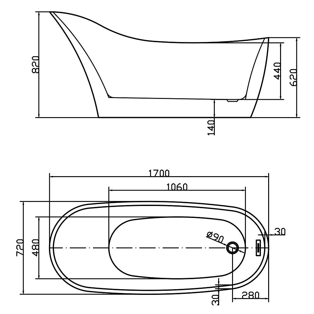 Akryl fristående bad 1700mm Swedbe Vita 8820