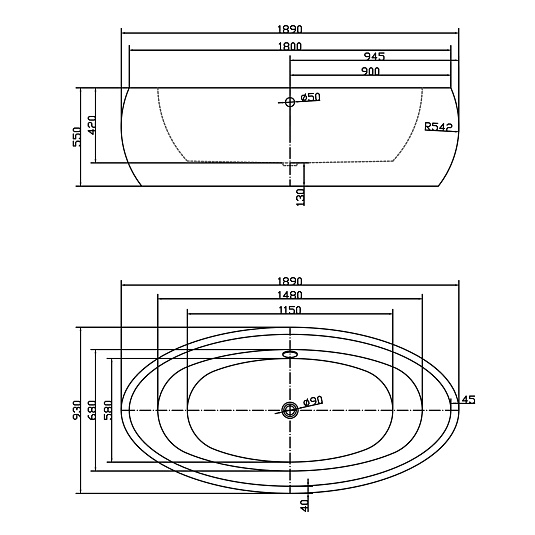 Akryl fristående bad 1890mm Swedbe Vita 8810